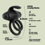 L’anello vibrante Thumper regalerà momenti intimi davvero eccitanti alla coppia grazie al mini bullet integrato da cui si sprigionano vivaci vibrazioni! Potrai sperimentare sensazioni intense grazie ai due anelli fallici che andranno a stimolare il pene e i testicoli con un’azione stringente durante il rapporto, per un godimento assicurato. L’estremità superiore leggermente ricurva si occuperà, in contemporanea, di stimolare piacevolmente la zona anale e/o clitoridea della partner durante la penetrazione. Il toy ha ben 10 modalità di vibrazione diverse e un telecomando wireless per giocare anche a distanza (fino a 15 metri). È realizzato in silicone ed è soft touch. Diametro interni degli anelli di 2,8 cm e 3,6 cm leggermente espandibili.