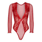 Body rosso a maglie larghe con maniche lunghe e scollatura a V.