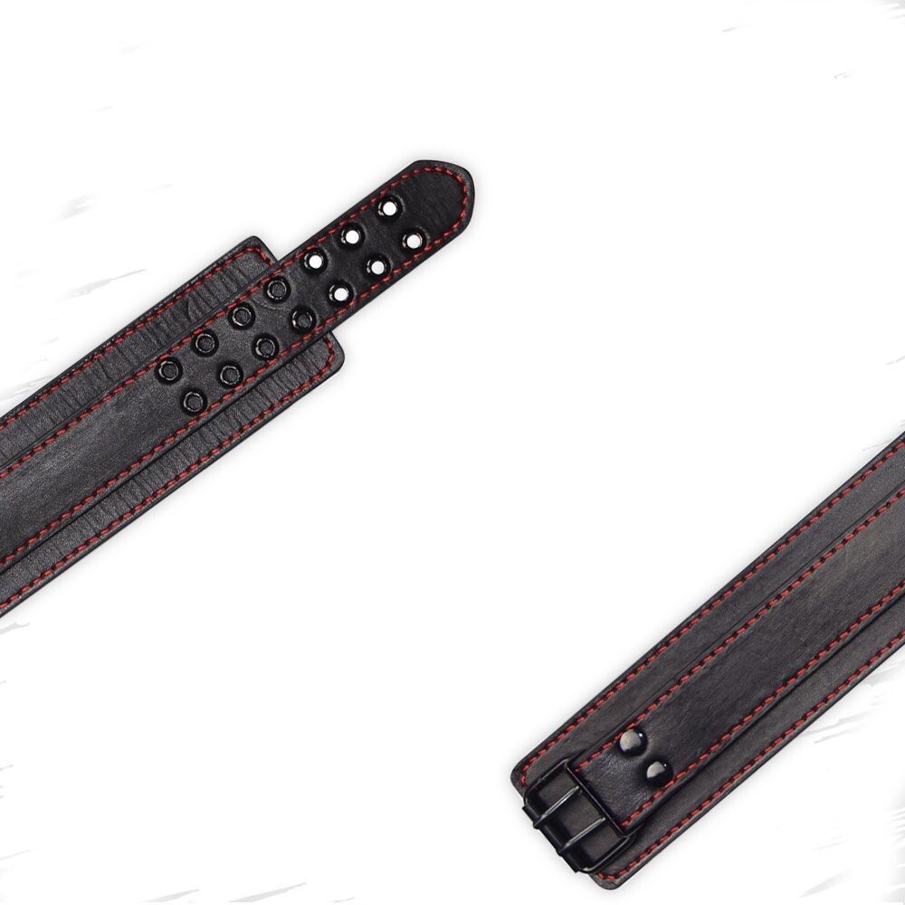 Fetish Pleasure è un oggetto di costrizione ideale per le pratiche BDSM. È un collare realizzato in similpelle nera con finiture rosse e dotato anche di una catena in acciaio. Dal design accattivante, completamente regolabile tramite la doppia chiusura con fibbia a 7 fori, per una vestibilità perfetta ed è collegato alla catena di metallo rimovibile e lunga 56 cm, sormontata da un cinturino in pelle per una presa decisa e sicura.