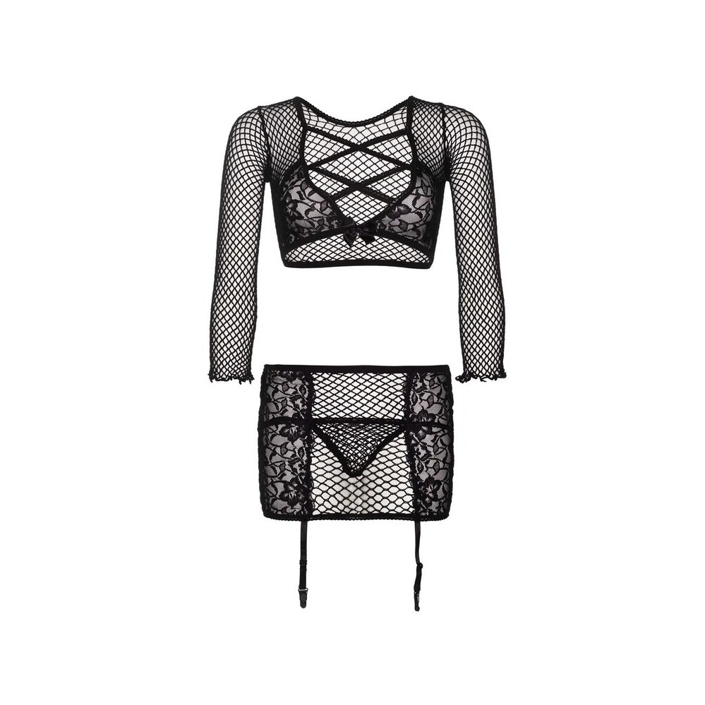 Il completino sexy Crop Top and Garter Skirt è un set di lingerie composto da un crop top, un perizoma coordinato e una gonna con giarrettiere integrate. Realizzato in materiali di alta qualità, il design coordinato offre una vestibilità elegante e funzionale. Questo set è ideale per aggiungere un tocco sofisticato al guardaroba.
