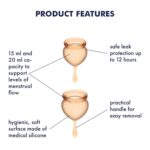 Set da 2 coppette con capacità di 15 e 20 ml, in pregiato silicone medicale ipoallergenico. Ideate per i periodi di ciclo, dai giorni più leggeri a quelli più intensi. Riutilizzabili dopo l’igienizzazione con acqua calda e toy cleaner.