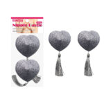 I Silver Heart sono dei copricapezzoli glitterati a forma di cuore e dal colore argentato, con nastrini collegati: un accessorio sensuale e stuzzicante per essere più seducenti e far impazzire di desiderio il partner! La forma si adatta perfettamente alle diverse forme e misure del seno, sono autoadesivi e possono essere riutilizzarli più volte per creare scenari erotici sempre diversi. Sono realizzati in Pu, Pe e Glitter, sono ipoallergenici e sicuri per la pelle. Sono molto comodi e possono essere indossati fino a 8 ore; hanno un diametro di 5,8 cm.