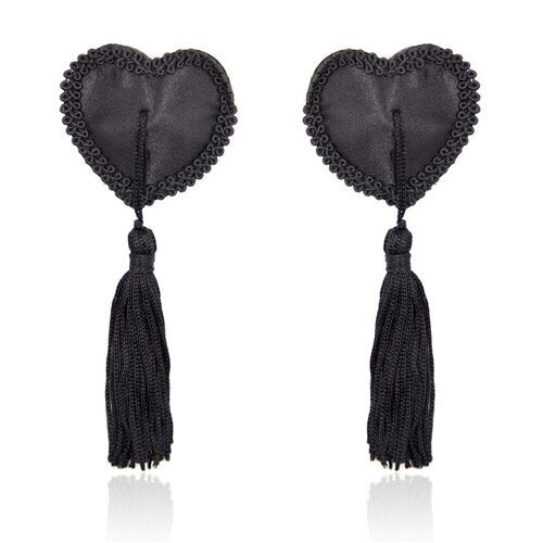 Coppia di copricapezzoli neri a forma di cuore della linea Fetish Art di Toyz4Lovers.