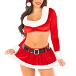 Il costume da Babbo Natale sexy HoHo Hottie è il travestimento perfetto per stupire durante le feste. Il set include un top rosso in velluto con scollo e polsini in pelliccia sintetica bianca, una sensuale minigonna e un classico cappello con pompon. Completa il look una cintura nera regolabile. Morbido tessuto elasticizzato per il massimo comfort. Attenzione: calze non incluse.