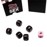 I dadi Play Sex sono un accessorio chiave per iniziare con i giochi di coppia. Come si gioca: Il gioco include 6 dadi; 5 neri e 1 rosa, che mostra le posizioni del Kamasutra. Il giocatore che inizia lancia i 5 dadi neri, che indicano parti del corpo, azioni, modalità, luoghi e tempi. Deve quindi eseguire la combinazione uscita. Il gioco diventa ancora più interessante se la parola “SEX” appare su almeno 3 dei dadi neri lanciati. In questo caso il giocatore fortunato dovrà lanciare il dado delle posizioni (rosa) per praticare le posizione del Kamasutra per tutto il tempo che desidera.