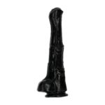 Black Pegaso è un dildo dalle dimensioni esagerate che riproduce il pene equino, creato per le più audaci e per le esperte della penetrazione. Il fusto è davvero lungo (40 cm) e caratterizzato da venature in rilievo ed una testa larga che aggiunge ancora più piacere all’esperienza erotica. Realizzato in Tpr di qualità, il toy è morbido al tatto, waterproof, flessibile e caratterizzato da una base a ventosa che lo terrà fermo e stabile su ogni superficie. Diametro: circa 13 cm.