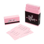 Sexy Pull & Play è il gioco di coppia perfetto se la routine ha preso il sopravvento o se si cercano nuovi stimoli per mantenere viva la fiamma della passione. Come si gioca: basta estrarre una carta dalla scatola. Ogni carta è divisa in due, quindi ogni partner deve tirare un lato della carta per conservare la propria metà da utilizzare. A seguire, bisogna leggere la propria sfida in silenzio, senza rivelare nulla all’altro. La carta con il numero 1 inizia mettendosi in posizione e agendo come indicato sulla carta, mentre quella con la numero 2 continua con la sua sfida. Bisogna solo agire: chi raggiunge l’orgasmo per primo perde.