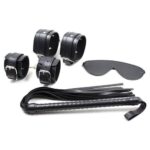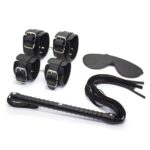 Kit in puro stile bondage comprendente frusta, manette, cavigliere e benda, per un esperienza ..