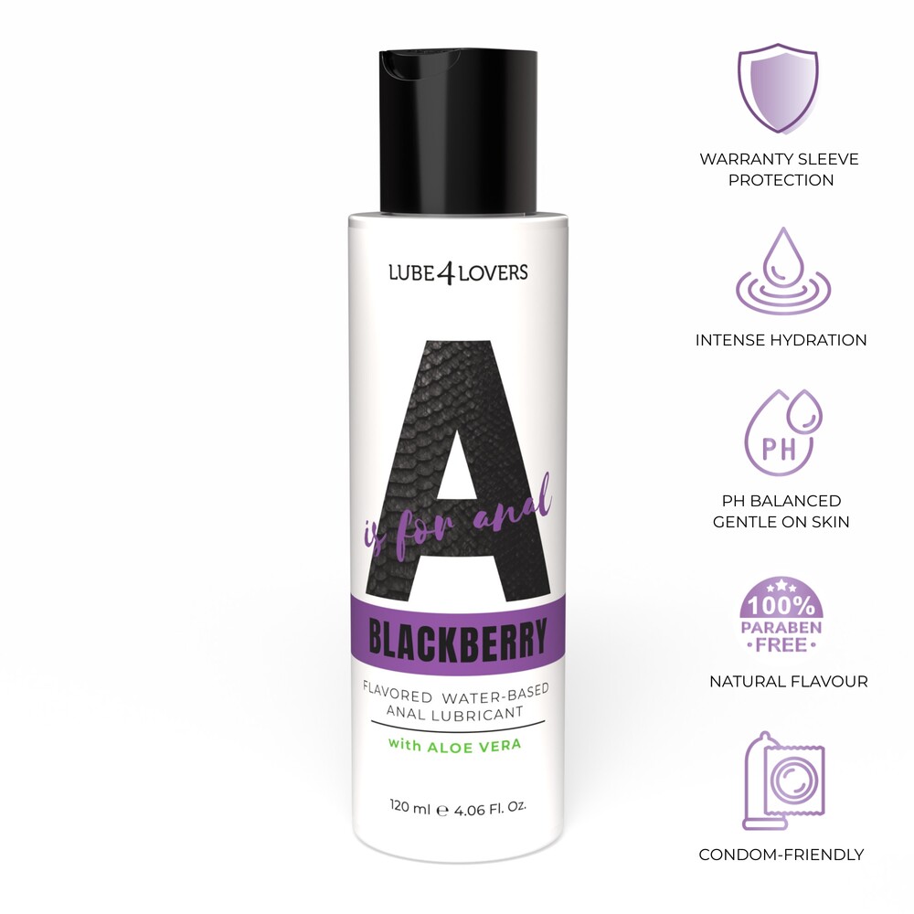 A is for Anal Blackberry è un lubrificante anale aromatizzato alla mora a base d’acqua, formulato per un uso sicuro e prolungato. La sua consistenza è studiata per facilitare i rapporti intimi, offrendo un’azione delicata e una lubrificazione duratura. PH bilanciato e arricchito con un’elevata percentuale di aloe vera per un’idratazione intensa e naturale. Compatibile con i preservativi in lattice e con tutti i sex toys. Packaging da 120 ml con tappo disc-top pratico e igienico.