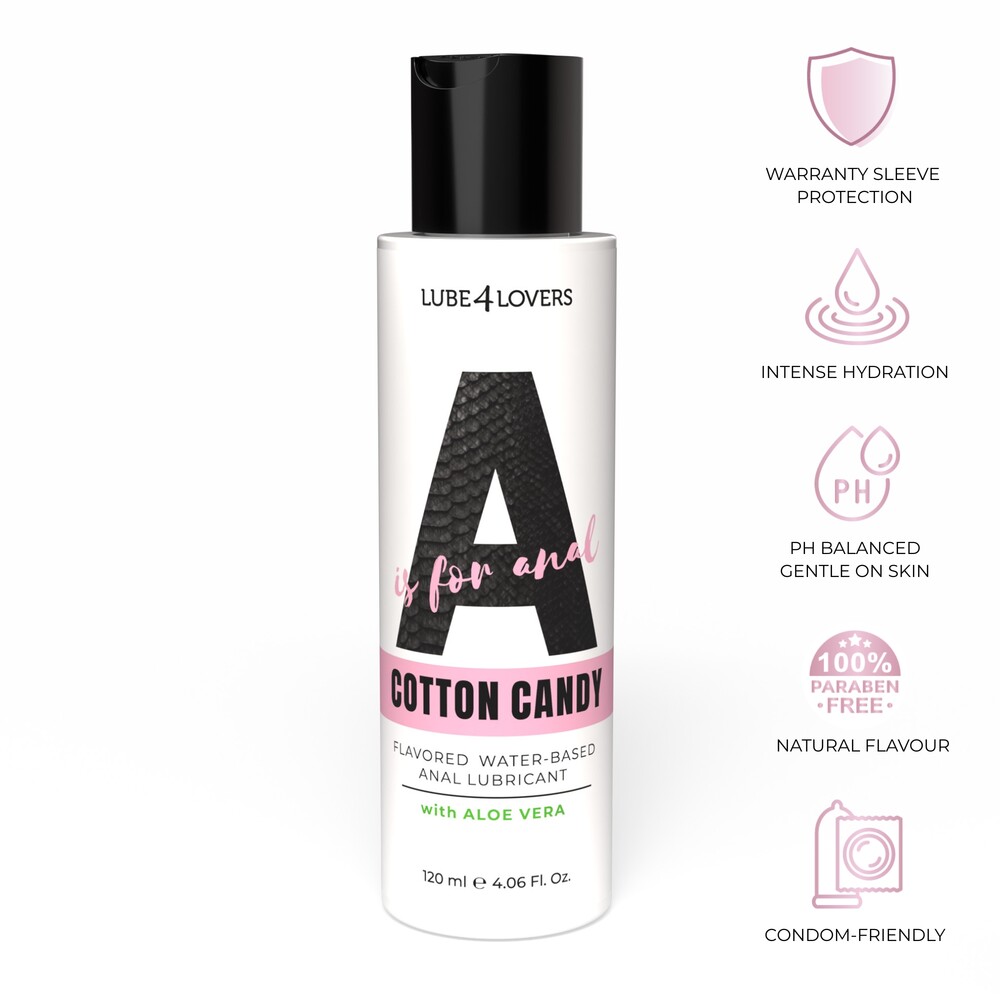 A is for Anal Cotton Candy è un lubrificante anale aromatizzato allo zucchero filato a base d’acqua, formulato per un uso sicuro e prolungato. La sua consistenza è studiata per facilitare i rapporti intimi, offrendo un’azione delicata e una lubrificazione duratura. PH bilanciato e arricchito con un’elevata percentuale di aloe vera per un’idratazione intensa e naturale. Compatibile con i preservativi in lattice e con tutti i sex toys. Packaging da 120 ml con tappo disc-top pratico e igienico.