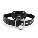 Morso nero con piccolo fallo per la bocca e lucchetto per essere bloccato alla nuca.