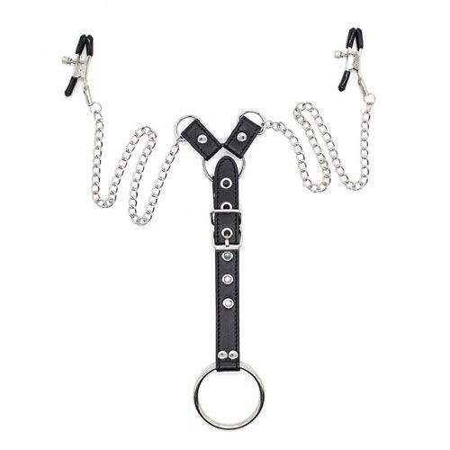 Prodotto fetish per uomini composto da pinze per capezzoli e anello fallico. Fa parte della linea ..