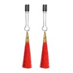 Le Tassel Red sono delle pinze per capezzoli dal look accattivante da morsetti regolabili e la punta in silicone per una chiusura ammortizzata. I nastri dal colore rosa collegati oscilleranno sensualmente ad ogni movimento, accarezzando il seno e stimolando anche il partner. Sono in metallo e ranyon di qualità, hanno un’impugnatura facile da regolare e sono adatte sia ai principianti che ai professionisti del fetish. Le pinze sono lunghe 14 cm e sono perfette da usare in fantasiosi giochi di ruolo con il partner.