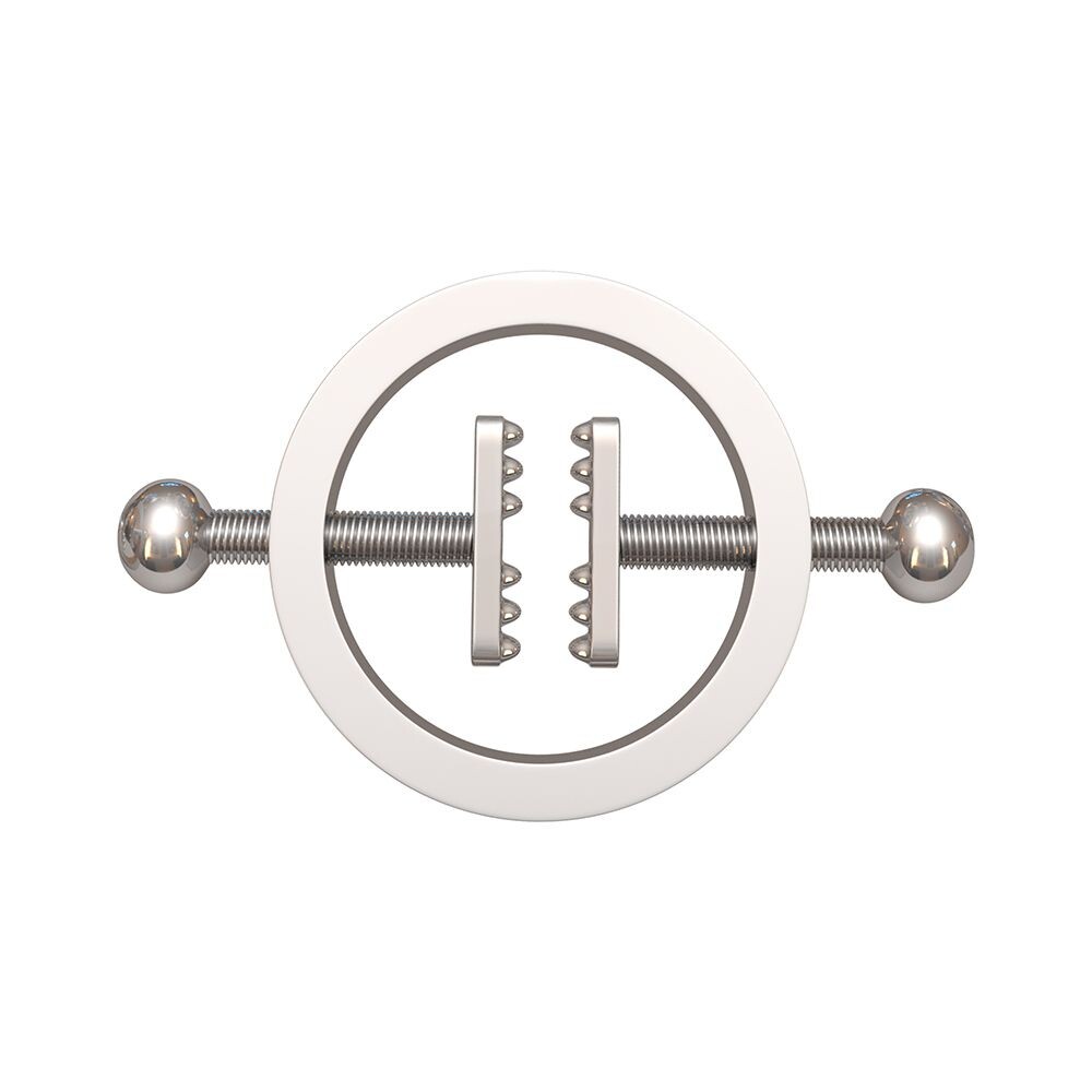 Sperimenta un turbine di sensazioni intense e avvolgenti con i costrittivi per capezzoli Teeth Bite di Chisa. Questo set di morsetti per capezzoli avvitabili è un delizioso strumento di tortura che consente di controllare la quantità di dolore o piacere che si vuole infliggere al partner. Basta infatti posizionare le piccole piastre metalliche sui capezzoli, meglio se leggermente turgidi, ed iniziare a serrare le viti. Costrittivi realizzati in metallo di qualità e progettati per sensazioni intense.