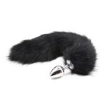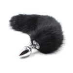 Plug anale in acciaio e finta pelliccia con coda di pelo lunga e soffice al tatto.