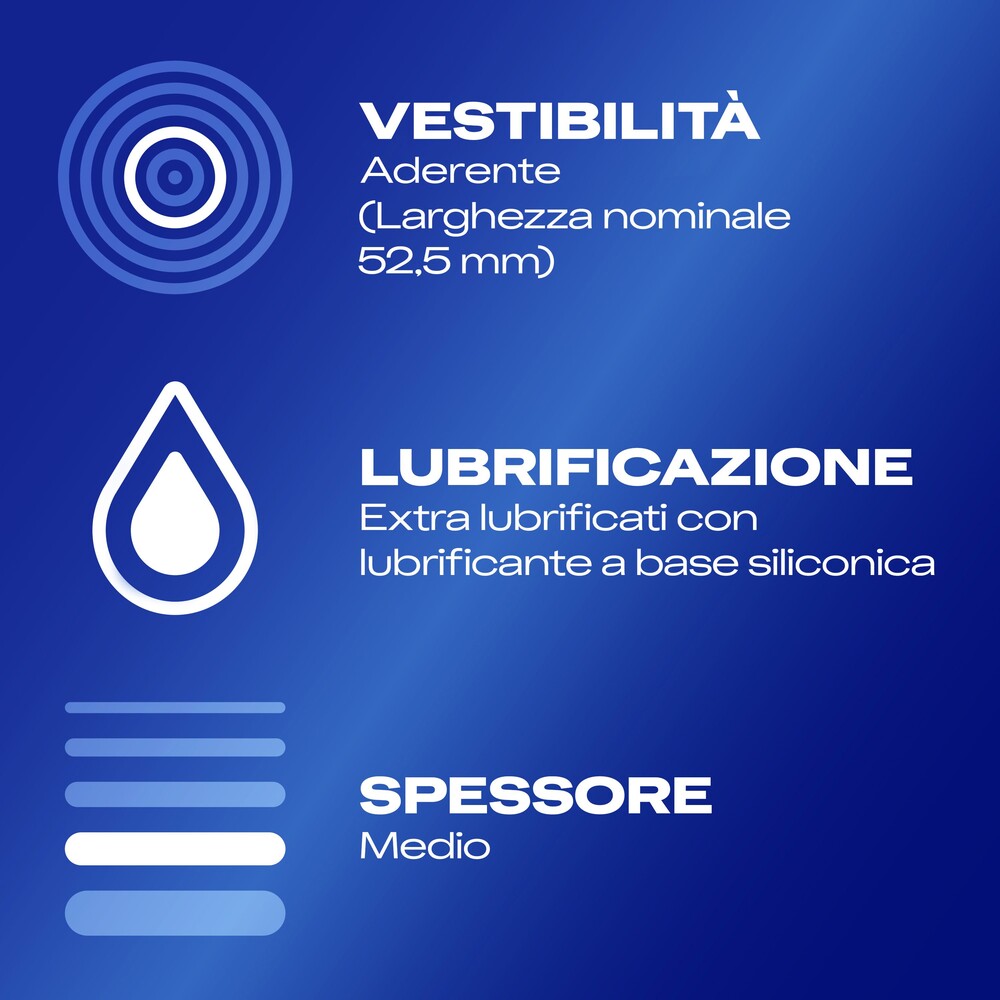 I preservativi Durex Settebello Classico sono un grande classico della tradizione! Trasparenti e lubrificati, questi profilattici hanno una forma classica con serbatoio che garantisce comfort durante i rapporti ed una facile applicazione. Sono realizzati in lattice di gomma naturale. Hanno una larghezza nominale di 52 mm. Già lubrificati con lubrificante a base siliconica. É necessario lavarsi sempre accuratamente le mani prima di scartare il condom. Fai attenzione a non lacerarne la superficie durante l’inserimento. Conservare in luogo fresco e asciutto, lontano dalla luce diretta del sole.
