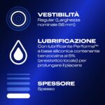 I preservativi Durex Sync sono perfetti per le coppie che desiderano sincronizzare il piacere sessuale e l’orgasmo. Realizzati in lattice, hanno una forma “easy-on” con serbatoio che offre una vestibilità ed un comfort elevati e sono anche gradevoli all’olfatto. Svolgono una doppia azione: sono ritardanti per lui perché contengono un gel al 5% di benzocaina che agisce come anestetico locale, ritardando l’eiaculazione. Inoltre, sono stimolanti per lei perché hanno una superficie ricoperta di rilievi e nervature che massaggiano le pareti vaginali durante la penetrazione. Già lubrificati e con una larghezza nominale di 56 mm. Confezione da 6 profilattici dermatologicamente testati.