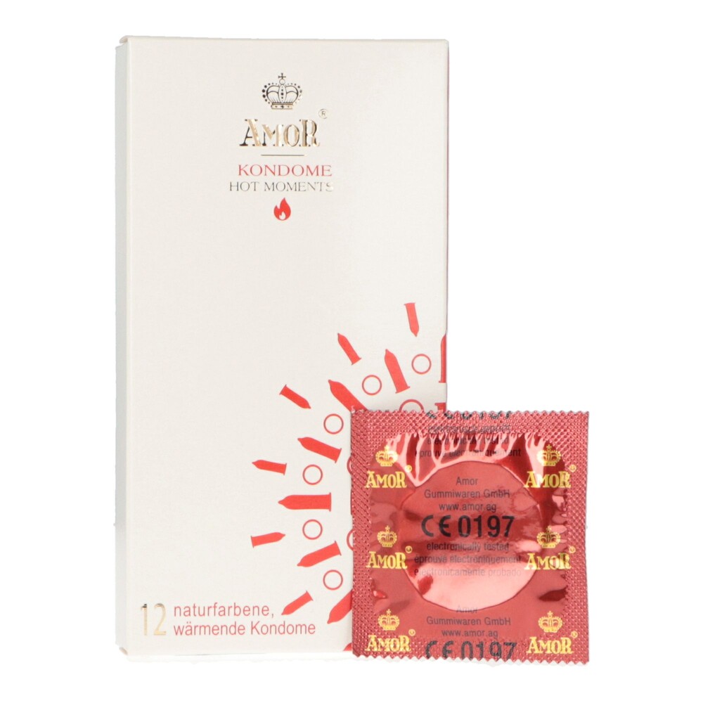 I preservativi stimolanti Hot Moments di Amor in lattice dalla forma classica con serbatoio sono arricchiti con lubrificante ad effetto caldo. Ideali per momenti hot, questi preservativi regalano un effetto riscaldante ed una sensazione intima piacevolmente passionale. La confezione contiene 12 preservativi dermatologicamente ed elettronicamente testati, con una larghezza nominale di 52 mm. I preservativi, se utilizzati correttamente, tutelano la donna da gravidanze indesiderate e proteggono entrambi i partner da malattie sessualmente trasmissibili.