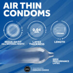 Gli Exs Air Thin sono i profilattici più sottili della gamma, perfetti per chi cerca un contatto il più possibile naturale. Realizzati in lattice ultra sottile, con uno spessore di soli 0,04–0,045 mm, risultano circa il 35% più sottili rispetto a un condom standard, offrendo una sensibilità superiore e un piacere intenso, quasi impercettibile. Hanno una larghezza nominale di 56 mm e una forma svasata per un maggiore comfort.