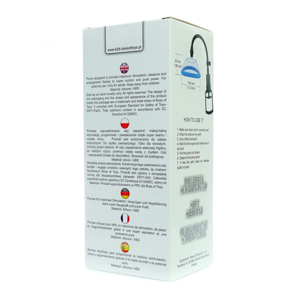 Succhia Clitoride Pussy Powerpump è una pompa a vuoto manuale progettata per la stimolazione clitoridea tramite un’intensa aspirazione controllabile. La cupola trasparente con bordo in gomma morbida garantisce aderenza e comfort durante l’utilizzo. La pompa manuale con valvola di rilascio permette una gestione precisa della pressione. Il prodotto è realizzato in materiali resistenti e facili da pulire.