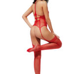 Tuta Sexy Red Malena è una tuta intera in rete rossa con struttura integrata effetto body e reggicalze. Il design presenta aperture sul décolleté e sul punto vita, con una lavorazione a rete a maglia larga che crea trasparenze evidenti. Il materiale elastico si adatta alle forme garantendo facilità di movimento. Il modello è realizzato in un unico pezzo con estetica sensuale e costruzione leggera.