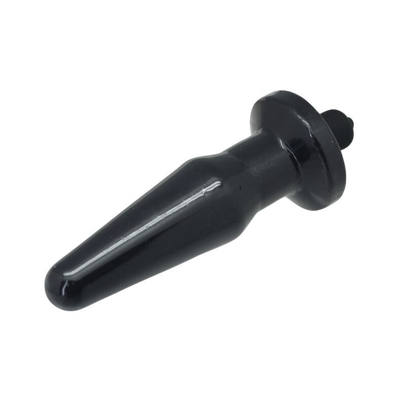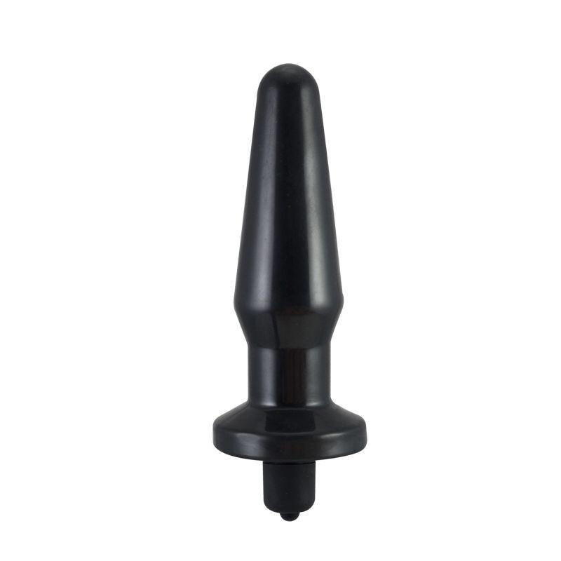 Anal Plug nero con vibro ON/OFF, totalmente impermeabile e realizzato in TPE. Lungo 12,4 cm di cui 11,5 inseribili, con un diametro di 3,6 cm. Privo di ftalati. Soft touch. Batterie incluse.