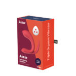 Acein è un sex toy dalle molteplici funzionalità: grazie alla sua particolare forma e ai tre motori indipendenti, stimola contemporaneamente vagina, ano e clitoride a suon di eccitanti vibrazioni. Non solo, è possibile azionarlo e cambiare i 10 diversi programmi vibranti anche a distanza tramite il piccolo e discreto telecomando wireless incluso. Realizzato in silicone Abs di qualità, Acein è compatto, flessibile, soft touch e waterproof. Si ricarica tramite cavo USB magnetico in dotazione. Diametri: 1,3 – 2,4 – 3,5 cm.